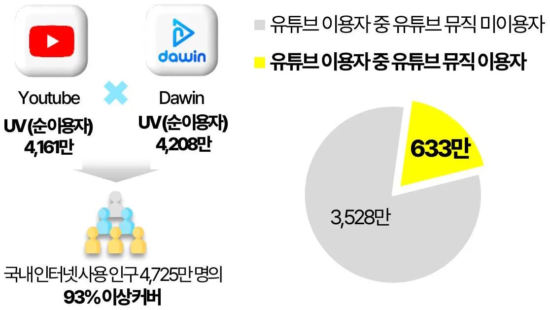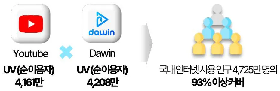 유튜브 내에서 도달하지 못하는 유튜브 프리미엄 사용자까지 다윈을 통한 추가 도달 및 단가 효율 극대화가 가능합니다.