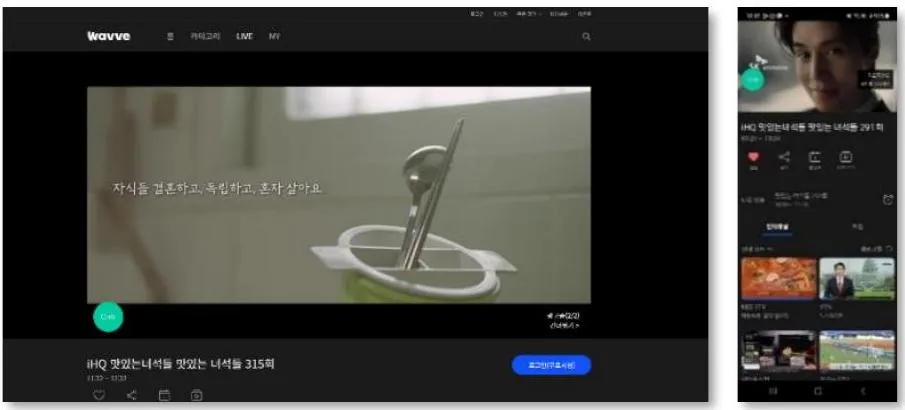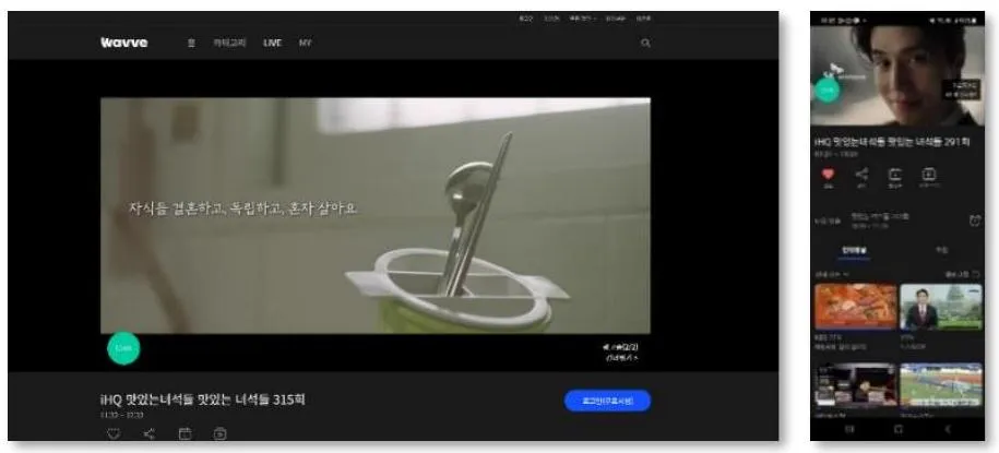 제휴LIVE채널(iHQ맛있는녀석들외23개)재생시프리롤형태로노출