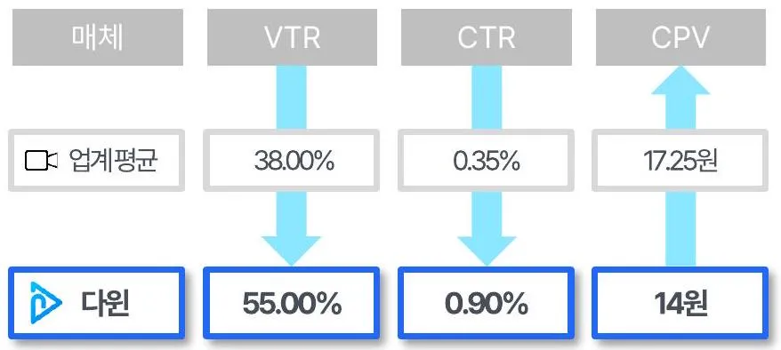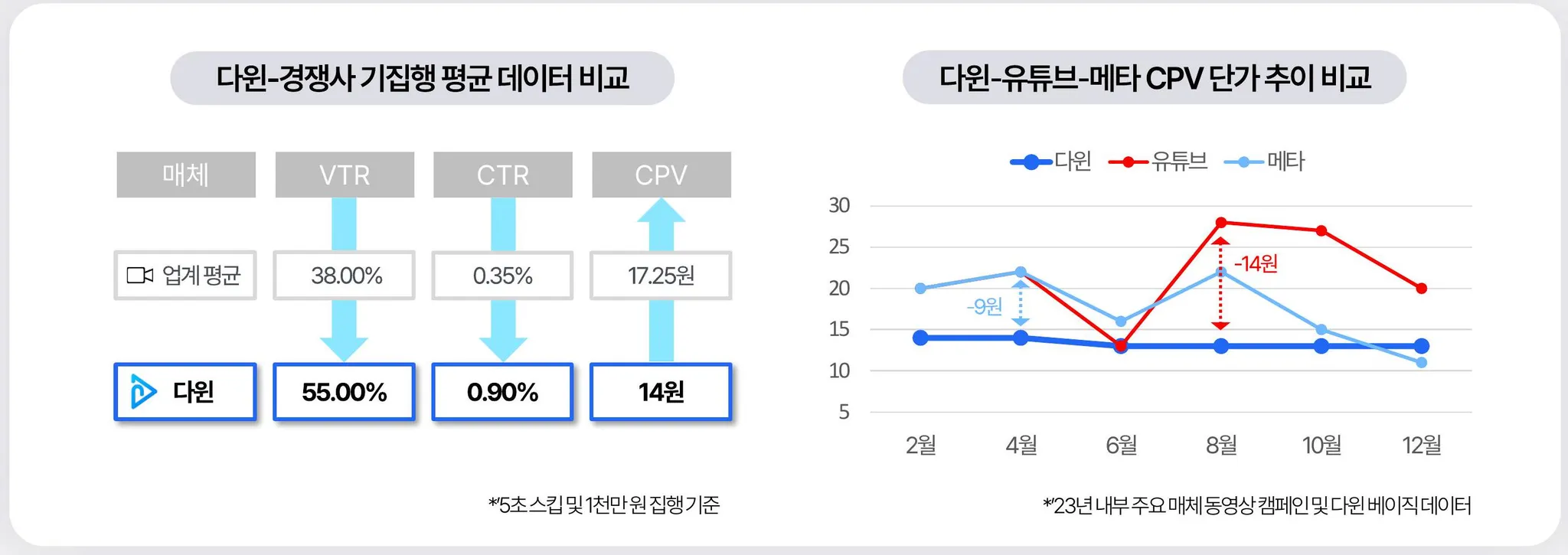 다윈 집행 시 캠페인 전체 효율 및 단가를 개선 및 안정적인 단가 폭으로 원활한 운영이 가능합니다.