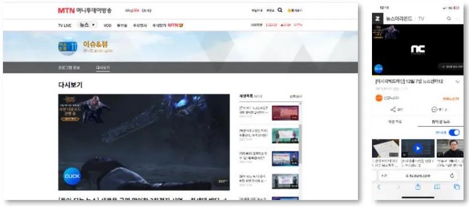 영상뉴스및VOD콘텐츠재생시프리롤형태로노출